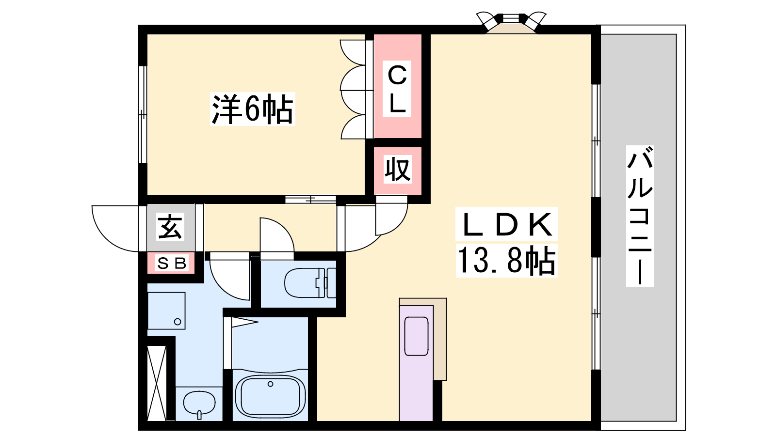 - LDK13.8帖、洋室6帖