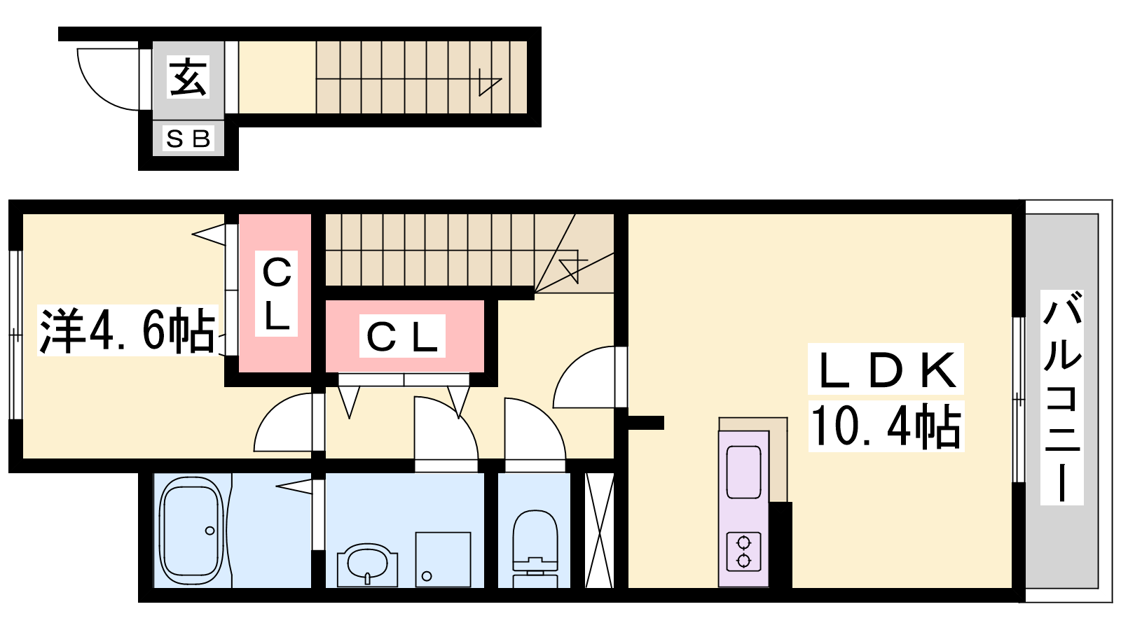 - LDK10.4帖、洋室4.6帖