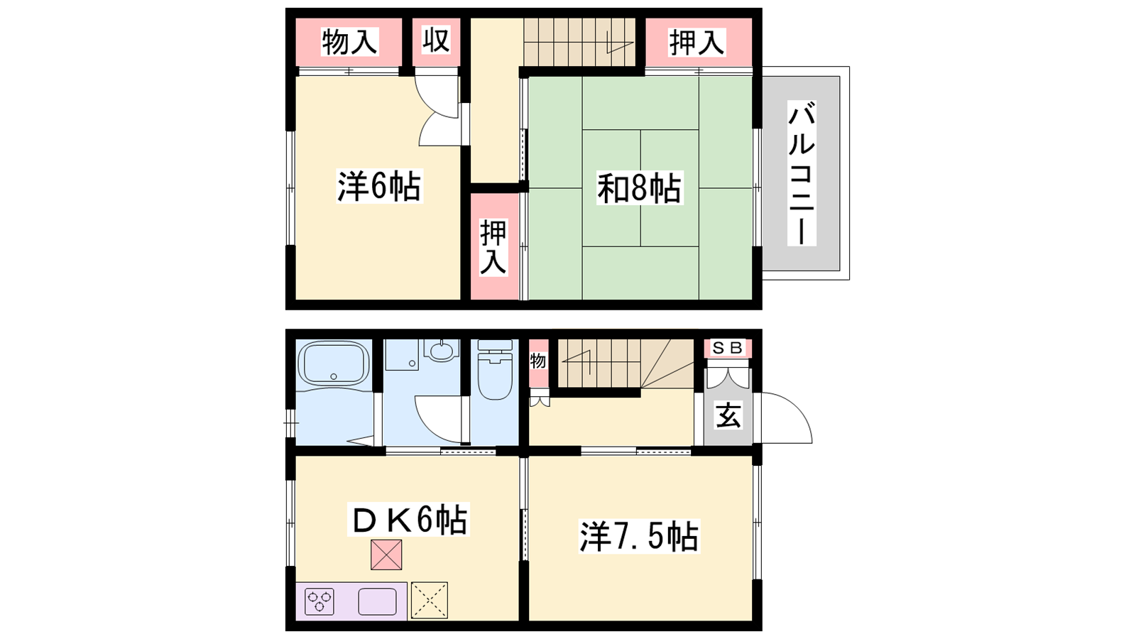 - DK6帖、洋室7.5帖、洋室6帖、和室8帖