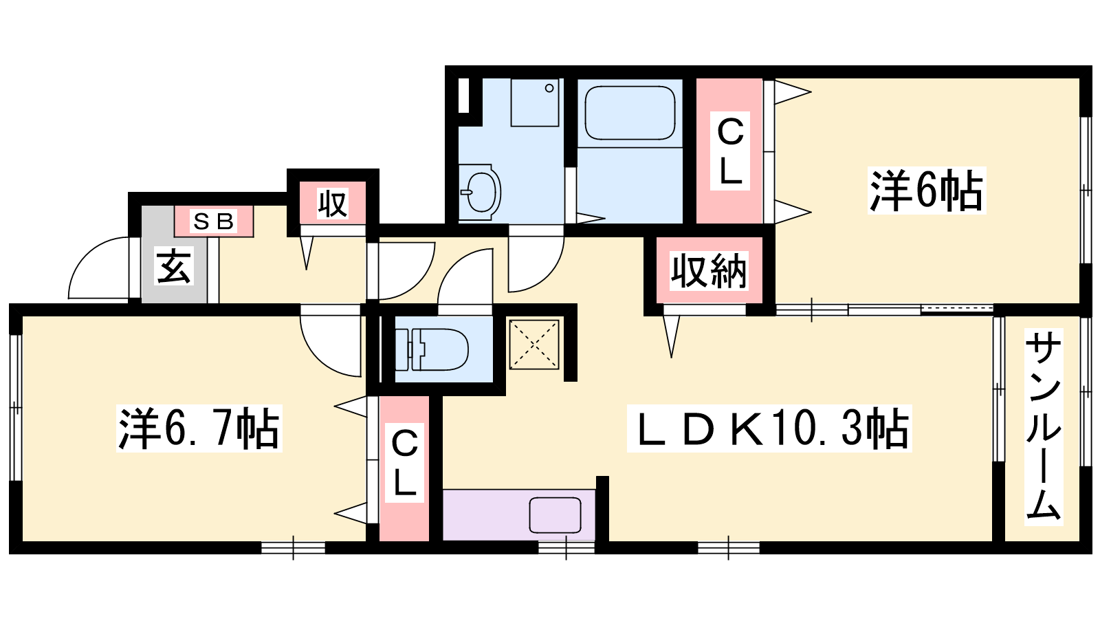 - LDK10.3帖、洋室6.7帖、洋室6帖