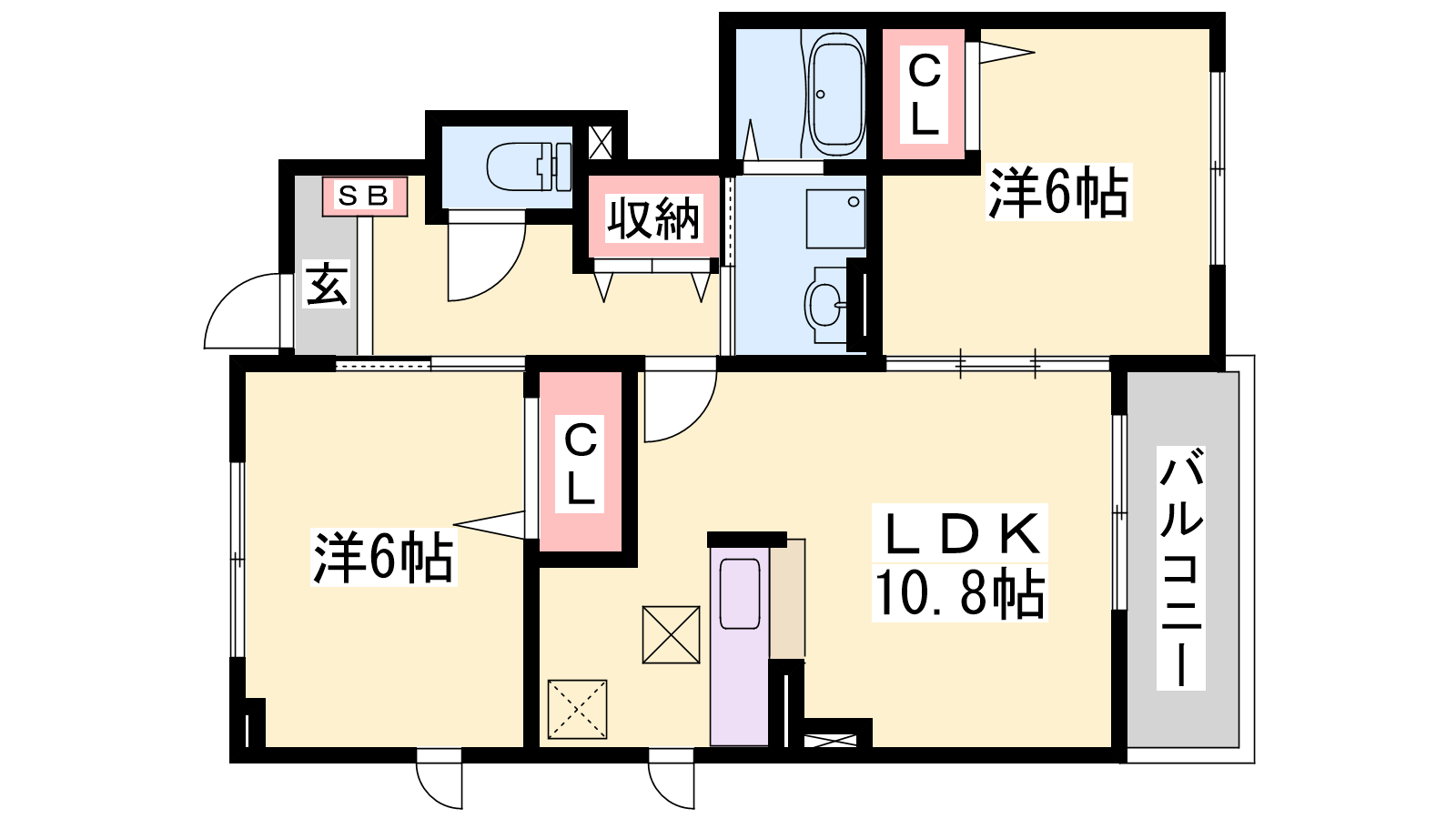 - LDK10.8帖、洋室6帖、洋室6帖