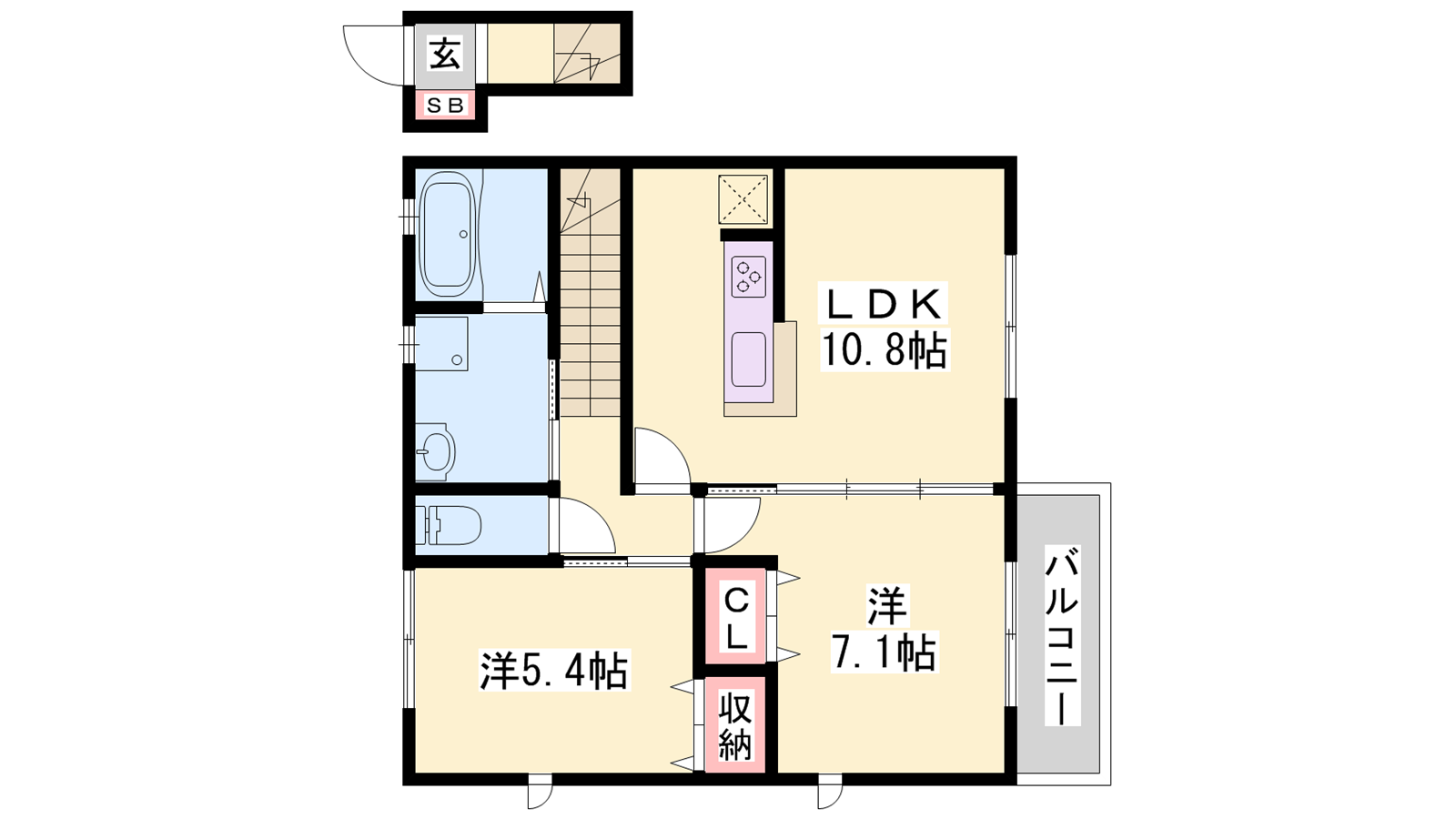 - LDK10.8帖、洋室7.1帖、洋室6.4帖