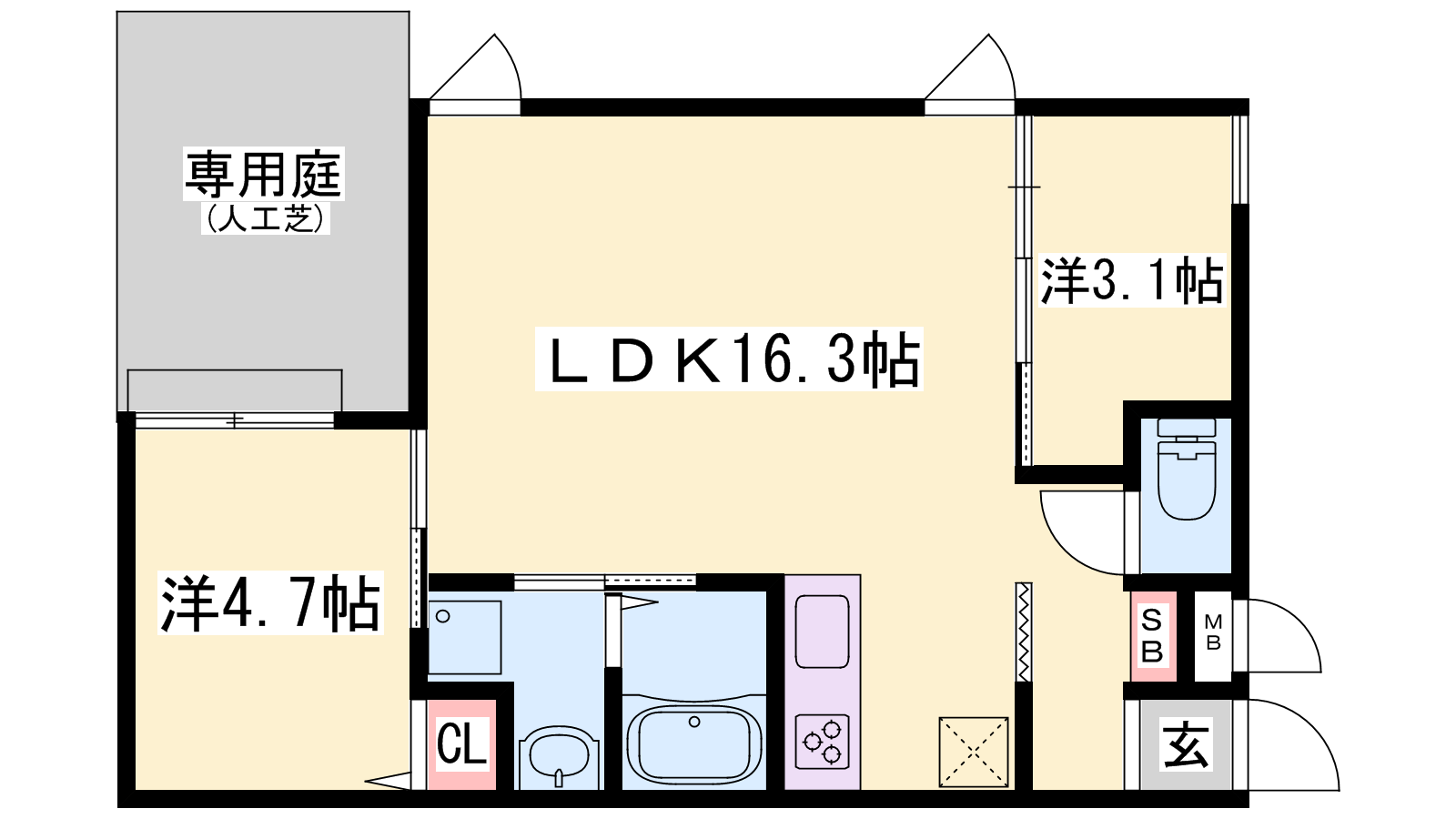 - LDK16.3帖、洋室4.7帖、洋室3.1帖