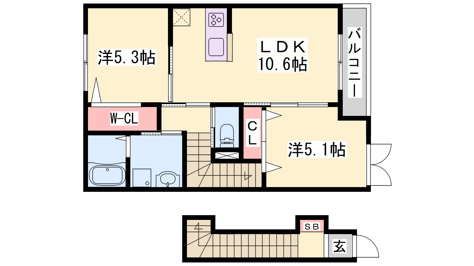 - LDK10.6帖、洋室5.3帖、洋室5.1帖