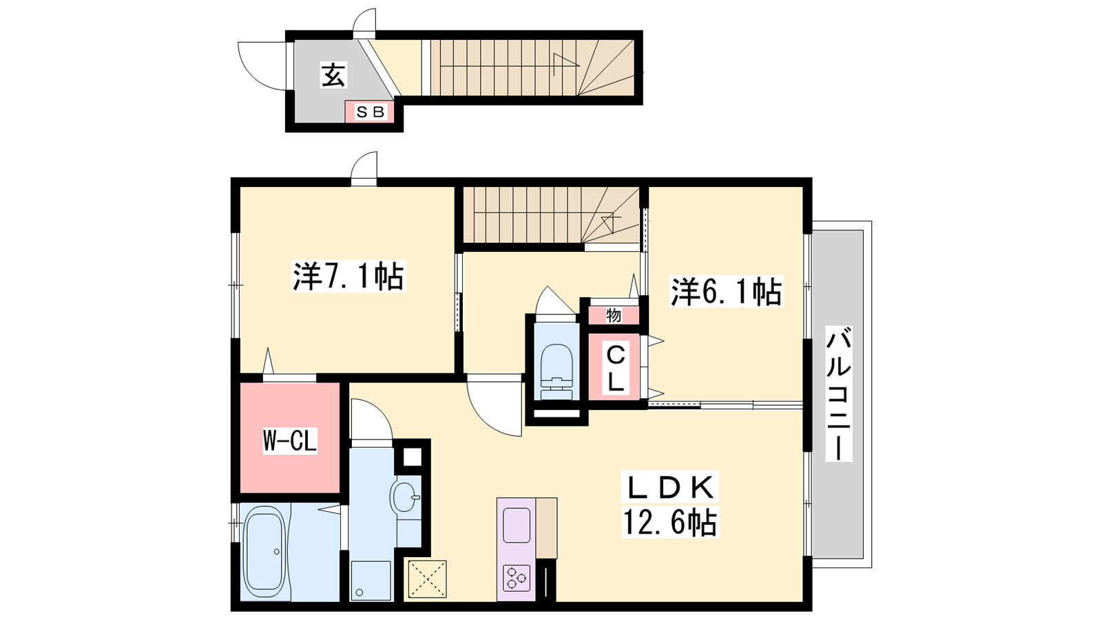 - LDK12.6帖、洋室7.1帖、洋室6.1帖