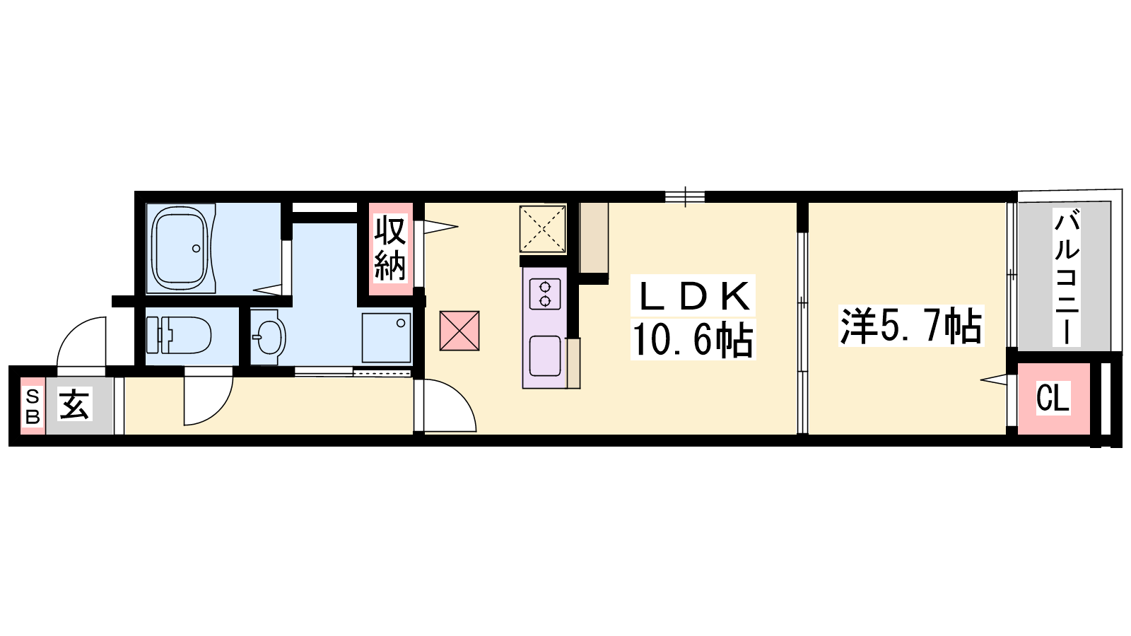 - LDK10.6帖、洋室5.7帖