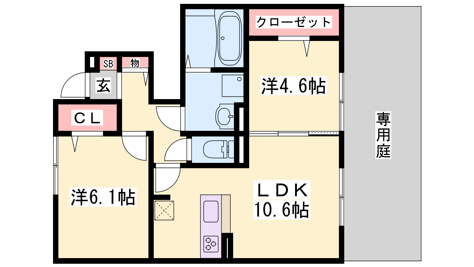- LDK10.6帖、洋室6.1帖、洋室4.6帖