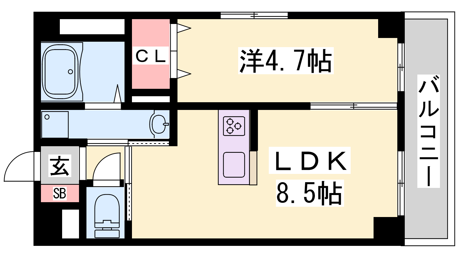 - LDK8.5帖、洋室4.7帖