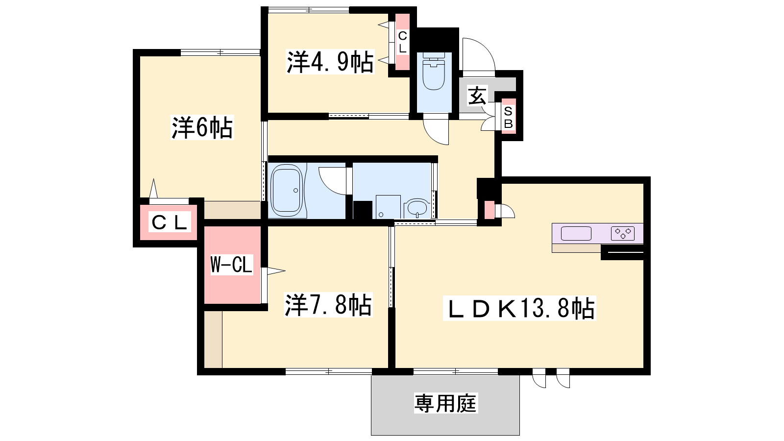 - LDK13.8帖、洋室7.8帖、洋室6帖、洋室4.9帖