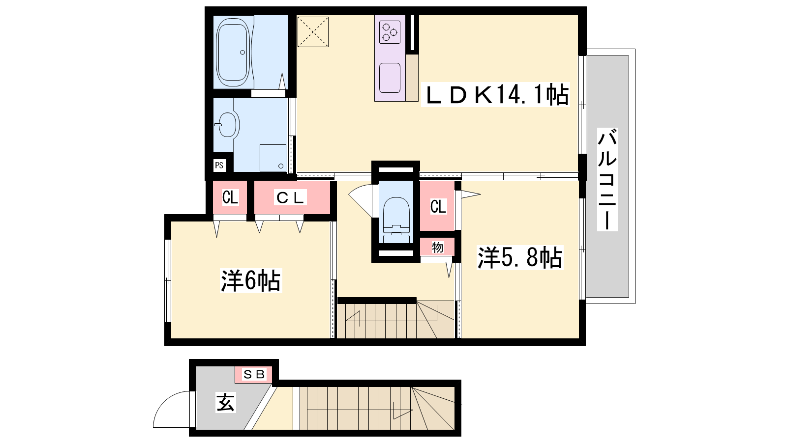 - LDK12.6帖、洋室7.1帖、洋室6.1帖