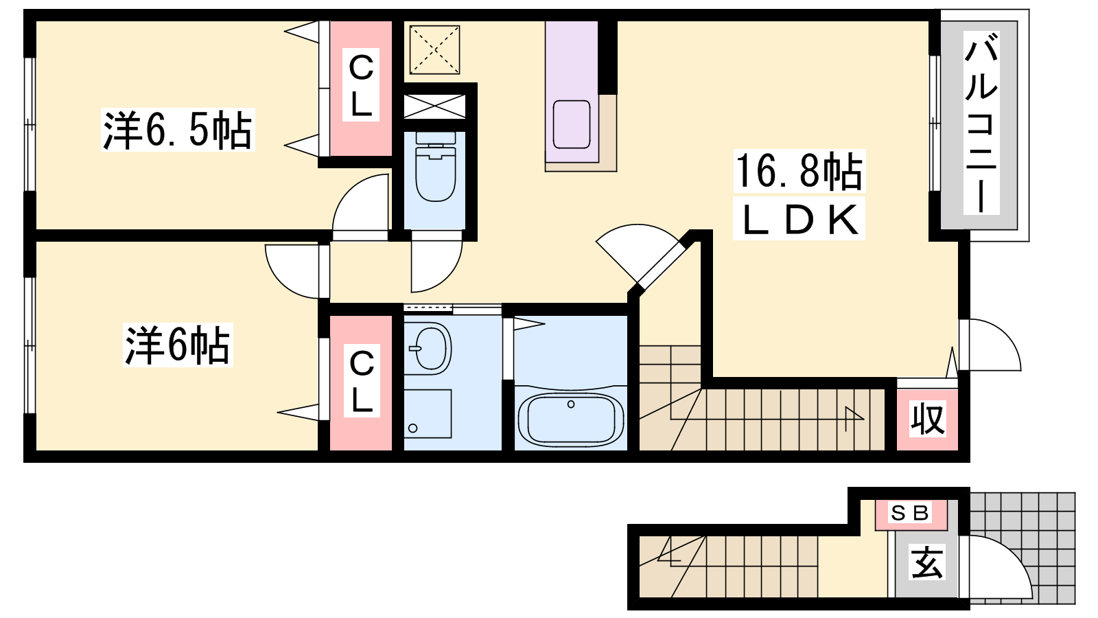 - LDK16.8帖、洋室6.5帖、洋室6帖