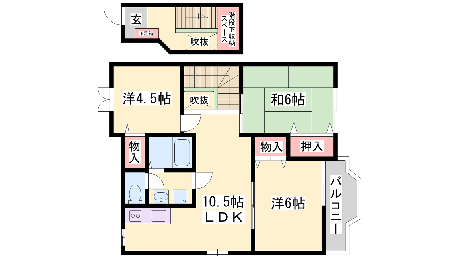 - LDK10.5帖、洋室6帖、洋室6帖、洋室4.5帖