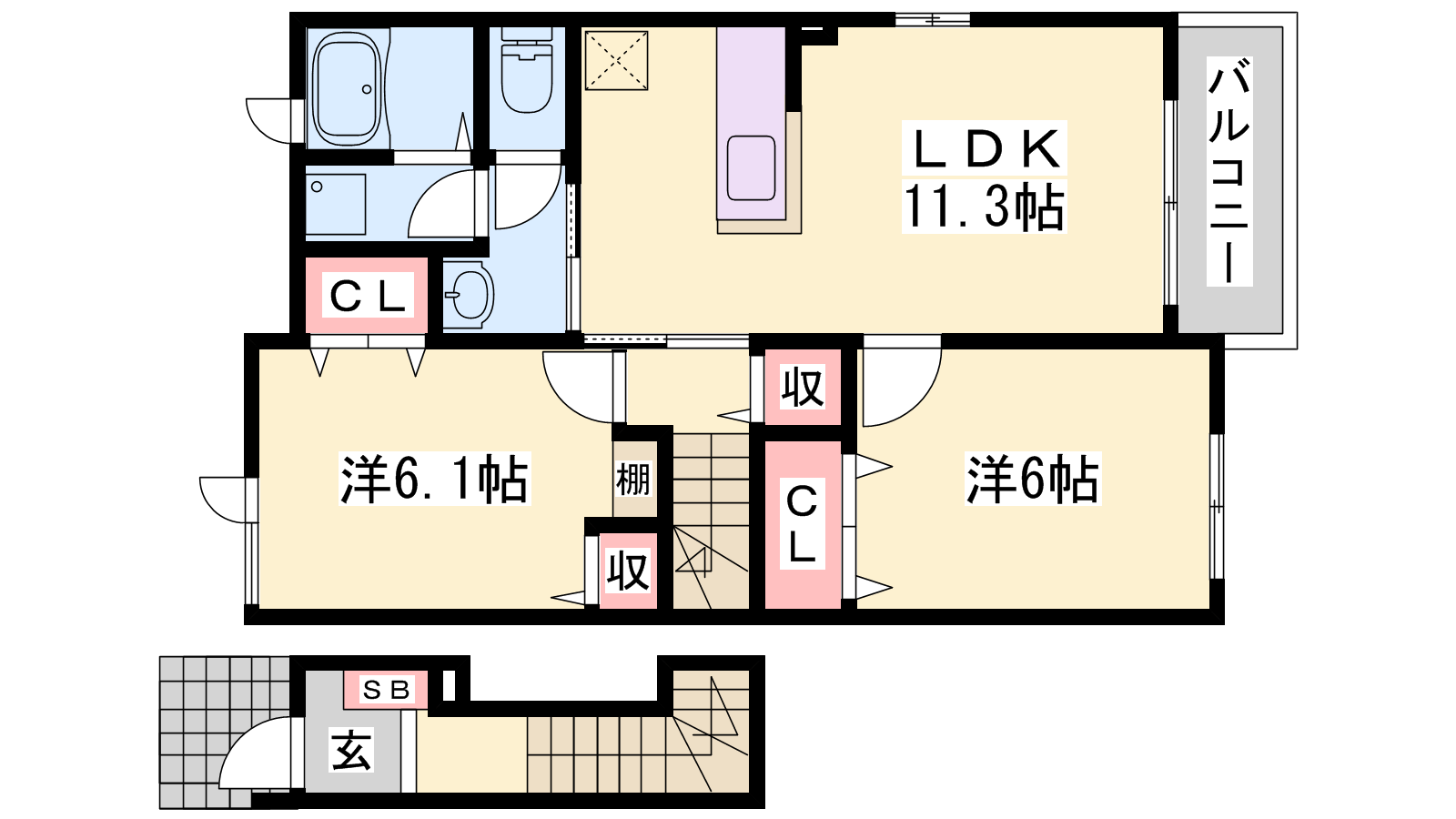 - LDK11.3帖、洋室6帖、洋室6.1帖