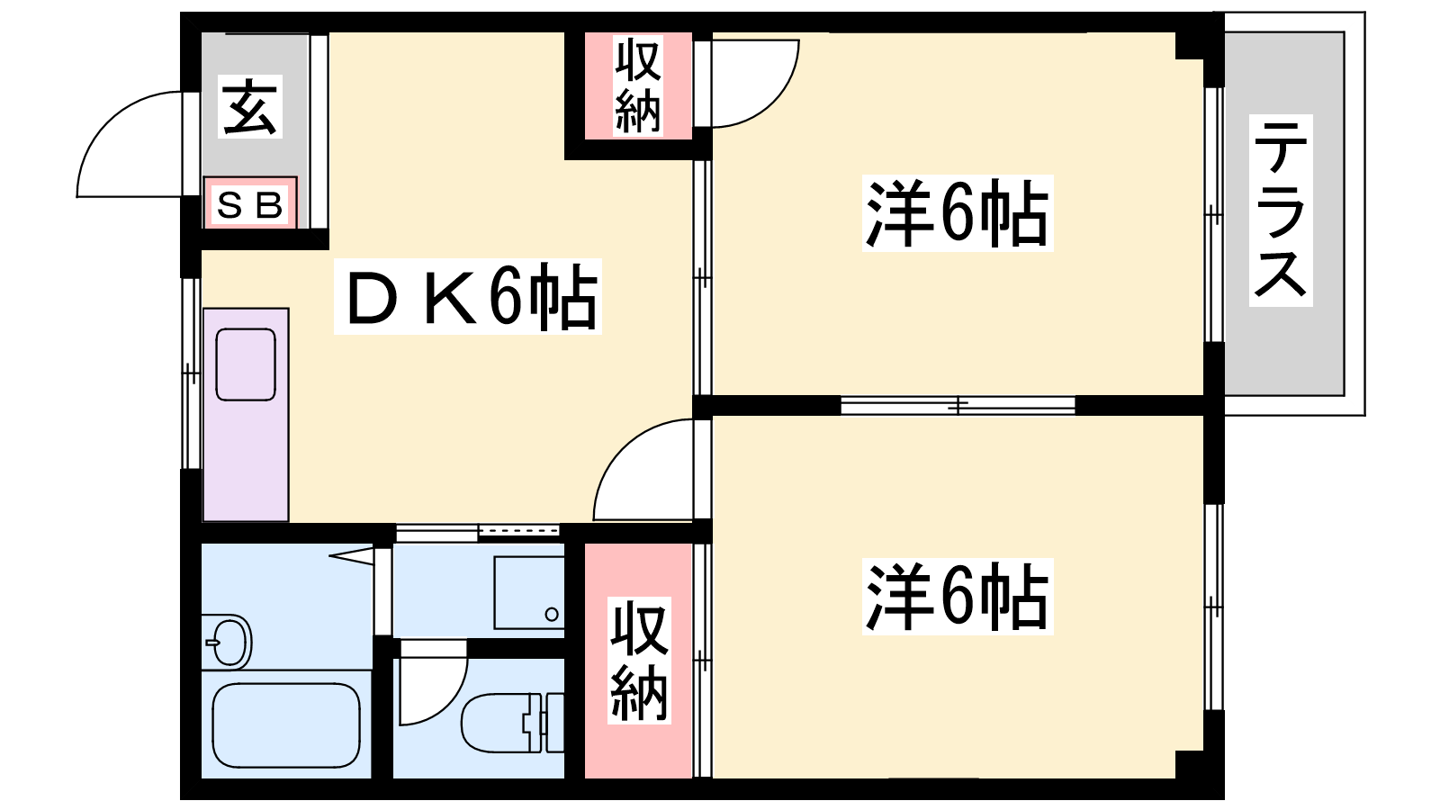 - DK6帖、洋室6帖、洋室6帖
