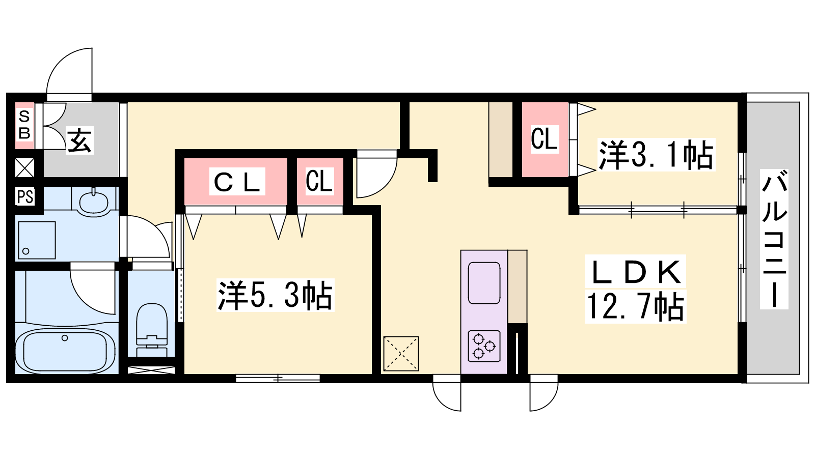 - LDK12.7帖、洋室5.3帖、洋室3.1帖