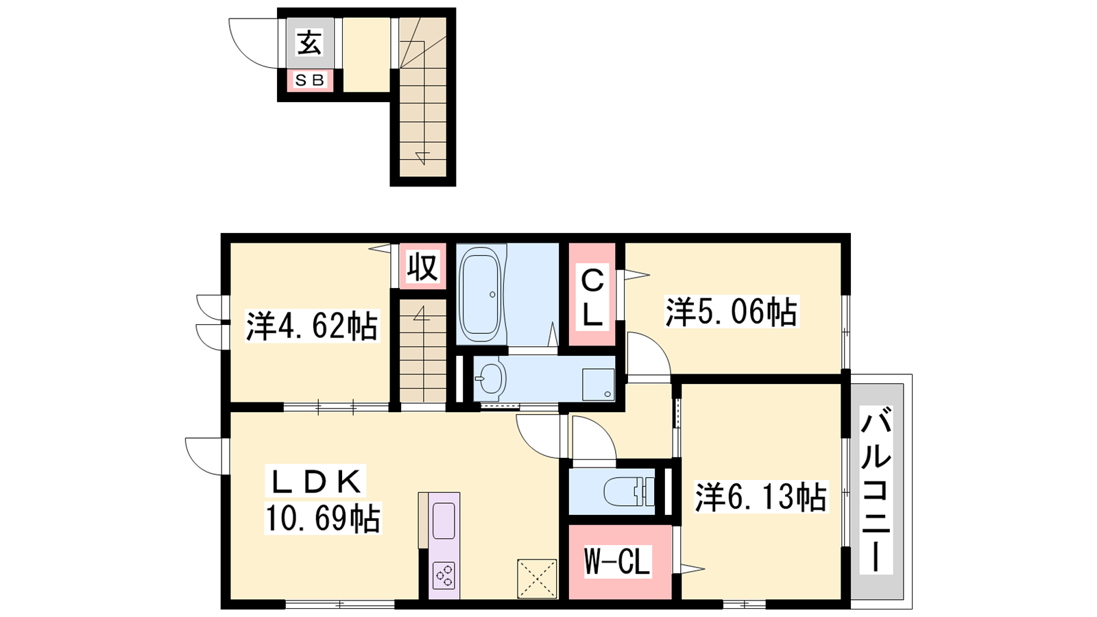 - LDK10.6帖、洋室6.1帖、洋室5帖、洋室4.6帖