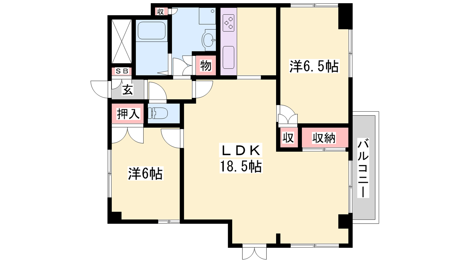- LDK18.5帖、洋室6.5帖、洋室6帖