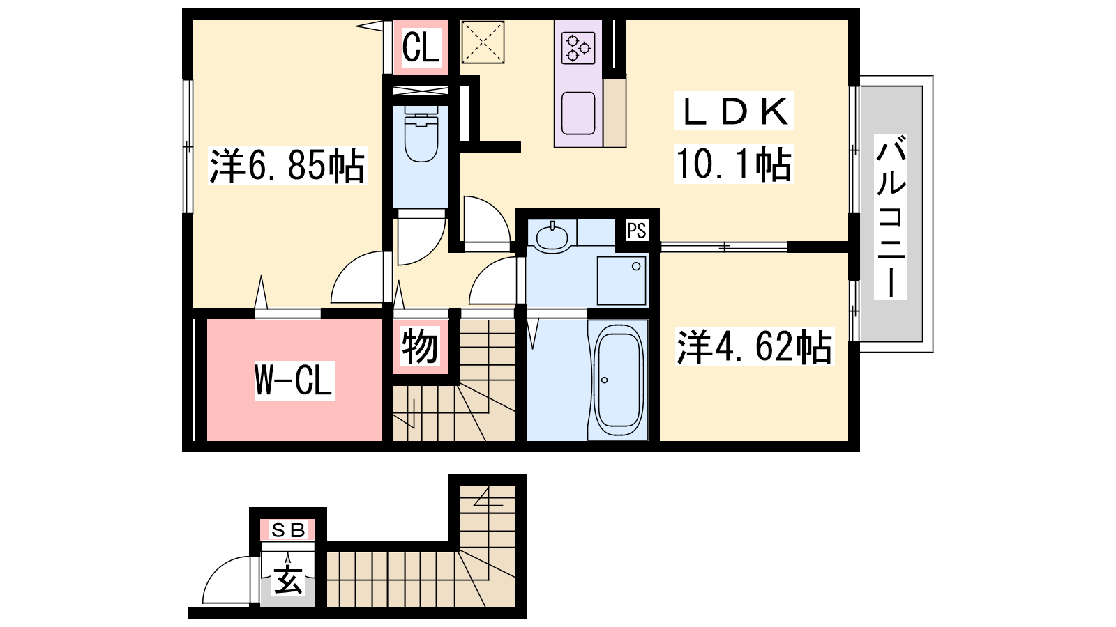 - LDK10.1帖、洋室6.85帖、洋室4.62帖