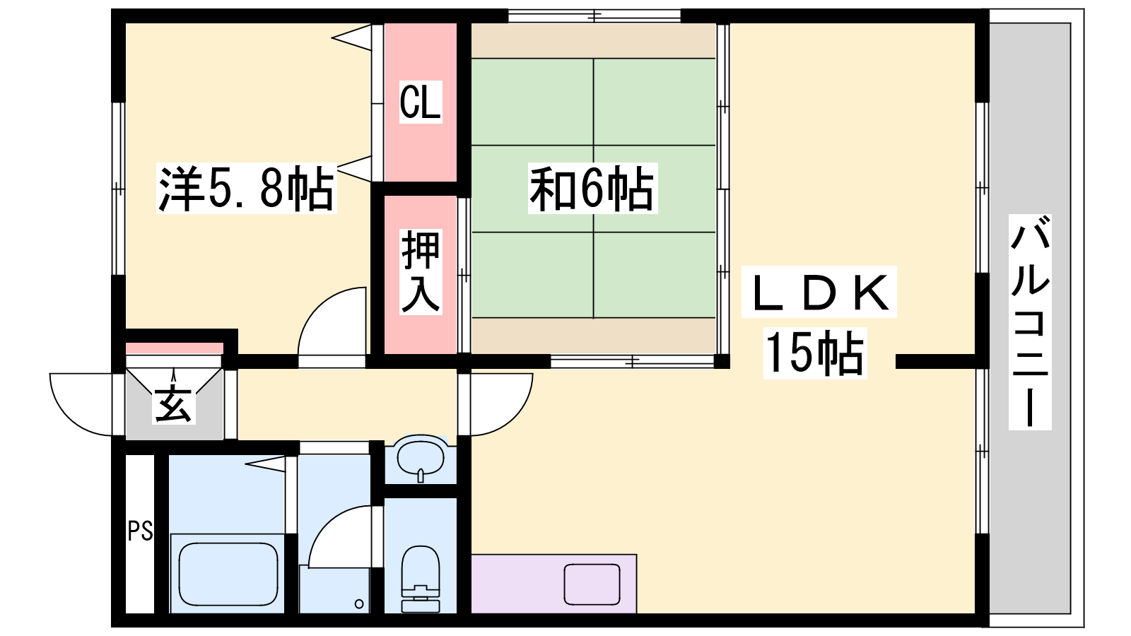 - LDK15帖、洋室5.8帖、和室6帖