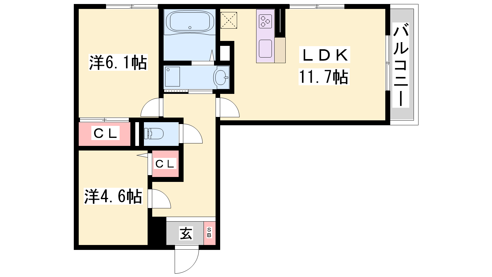 - LDK11.7帖、洋室6.1帖、洋室4.6帖