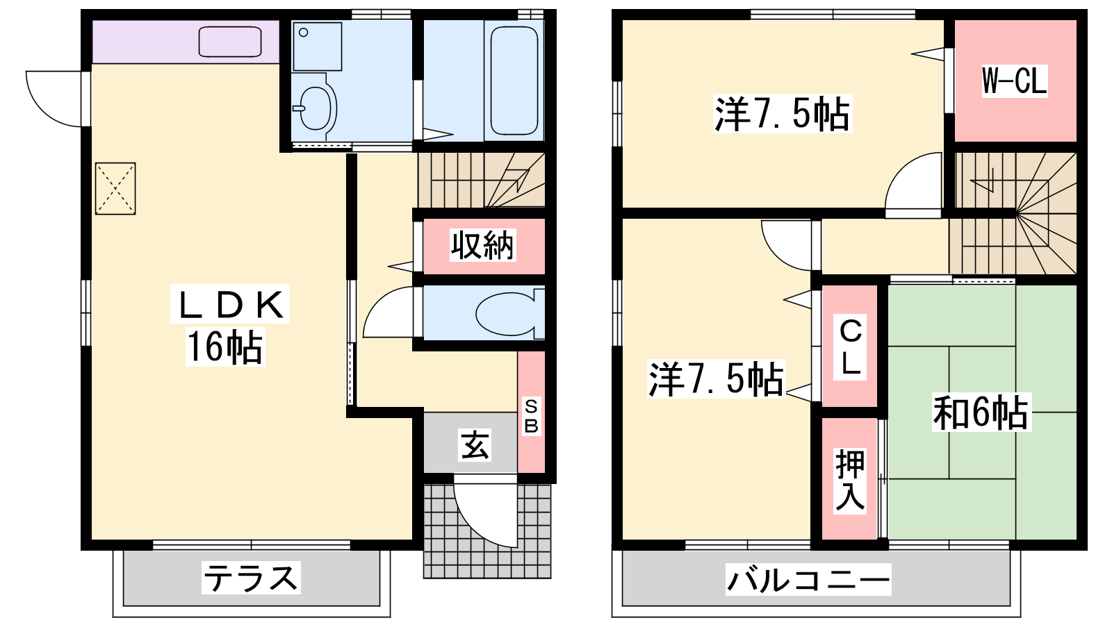 - LDK16帖、洋室7.5帖、洋室7.5帖、和室6帖
