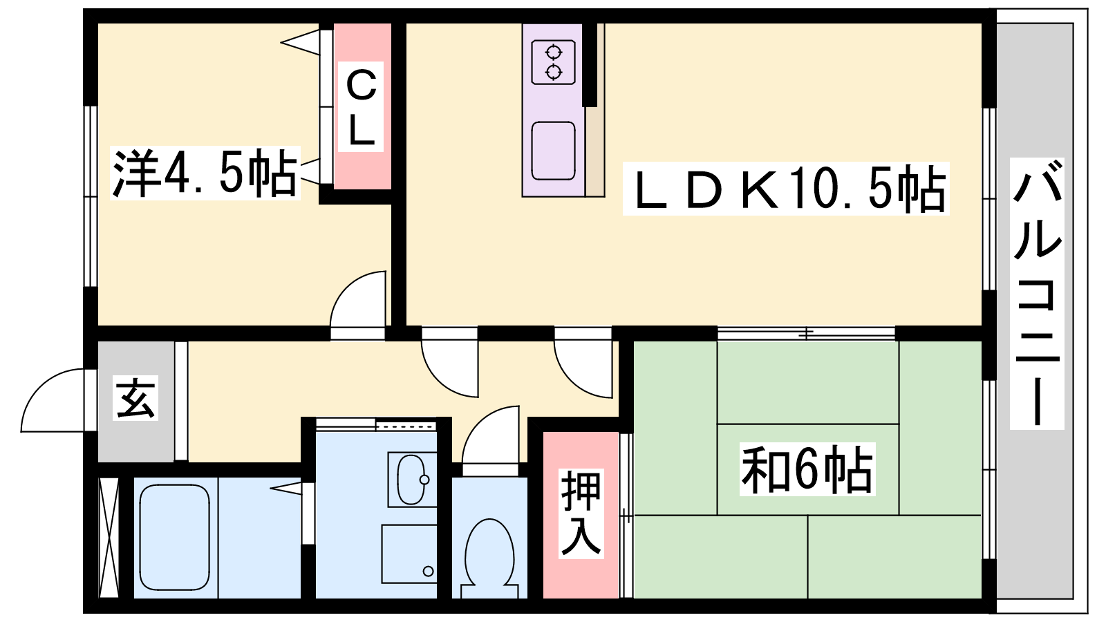 - LDK105帖、和室6帖、洋室4.5帖