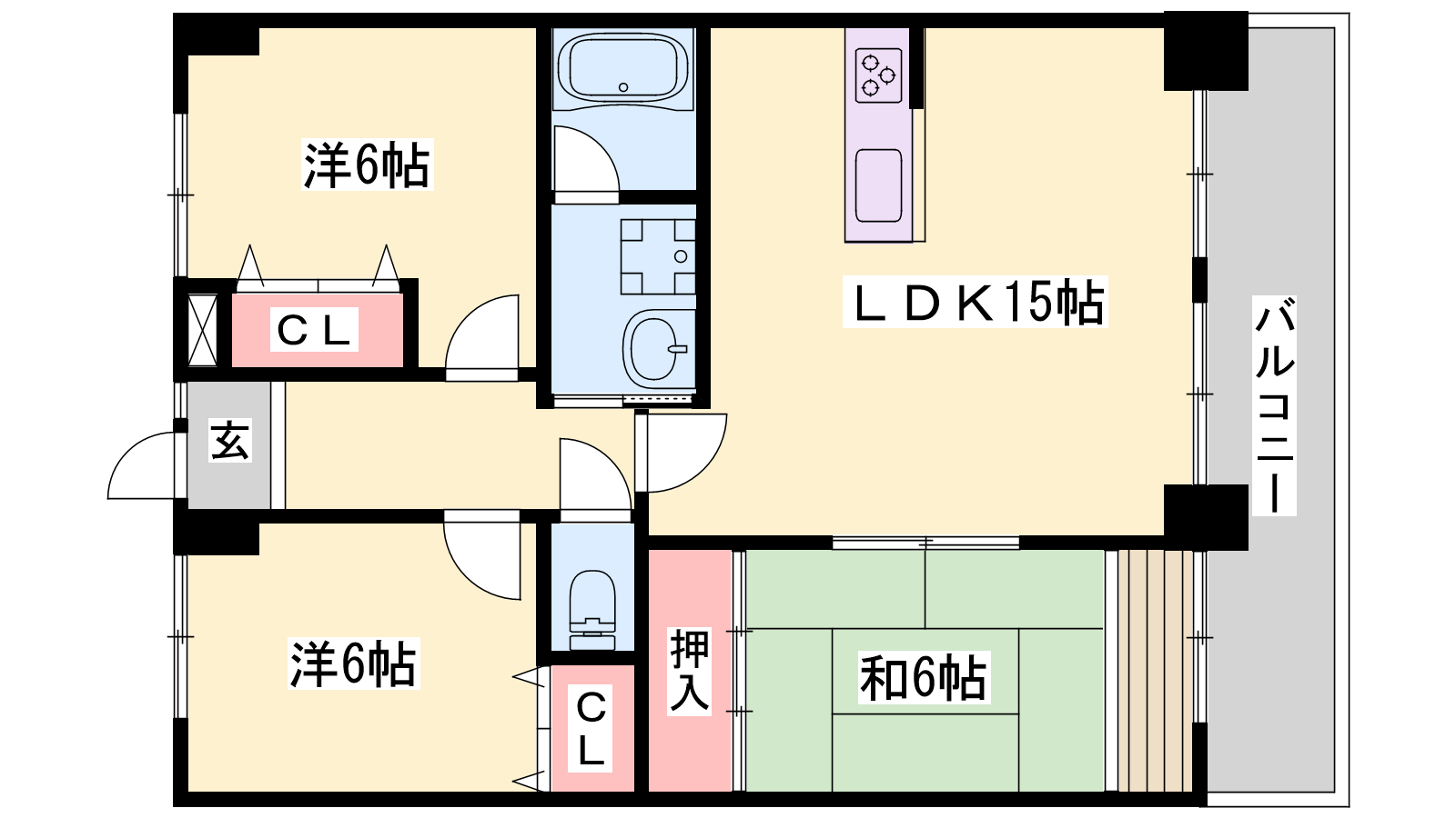 - LDK15帖、洋室6帖、洋室6帖、和室6帖