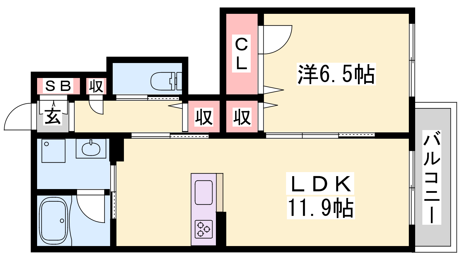 - LDK11.9帖、洋室6.5帖