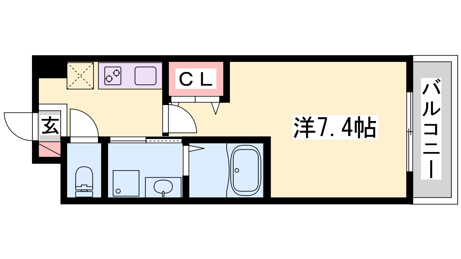 - K3帖、洋室7.4帖
