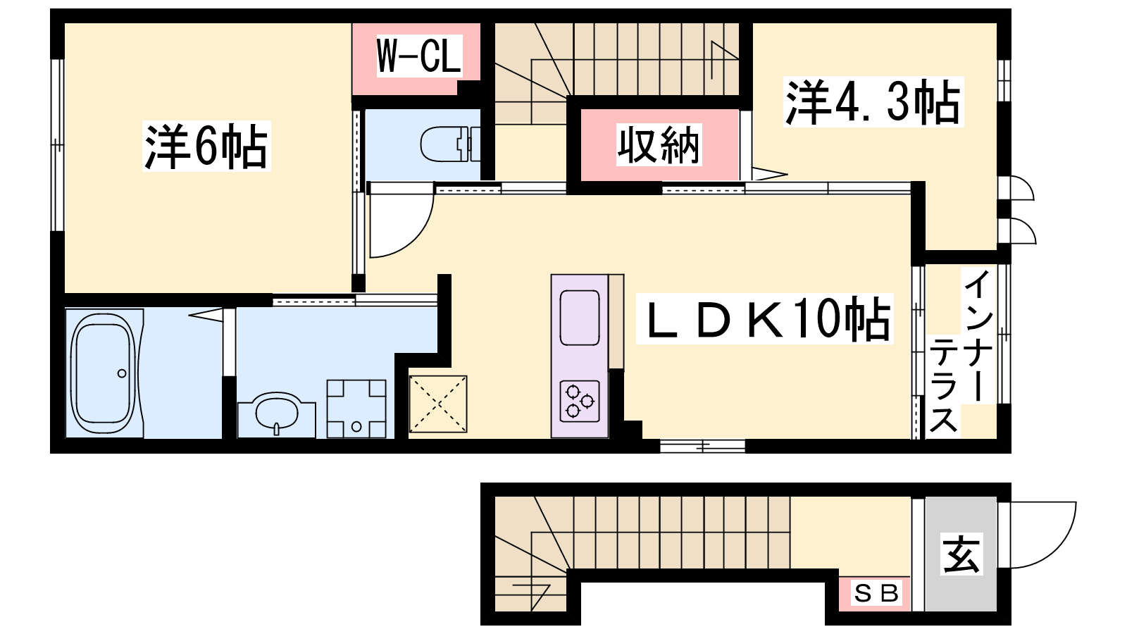 - LDK10帖、洋室6帖、洋室4.3帖