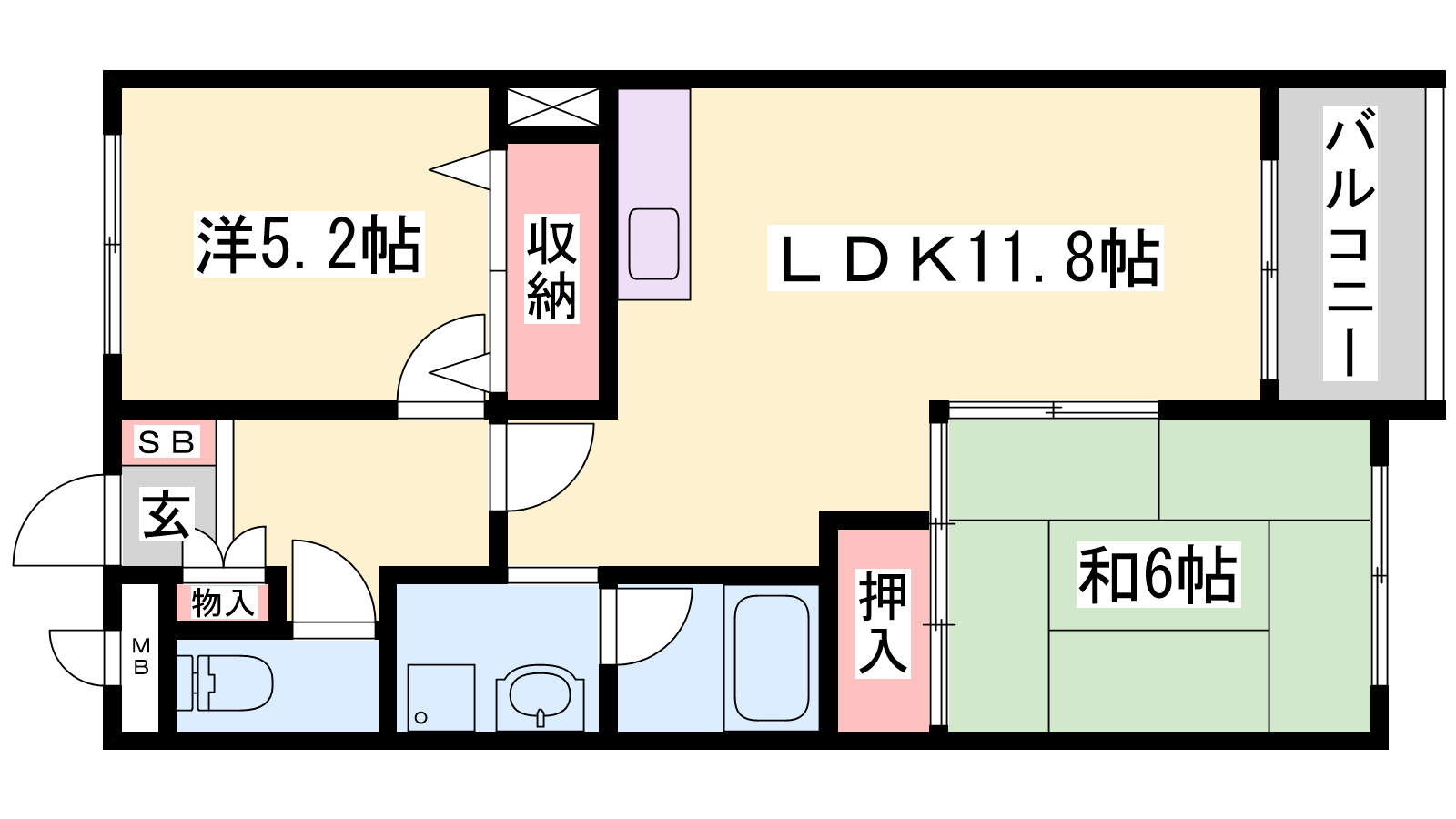 - LDK11.8帖、和室6帖、洋室5.2帖