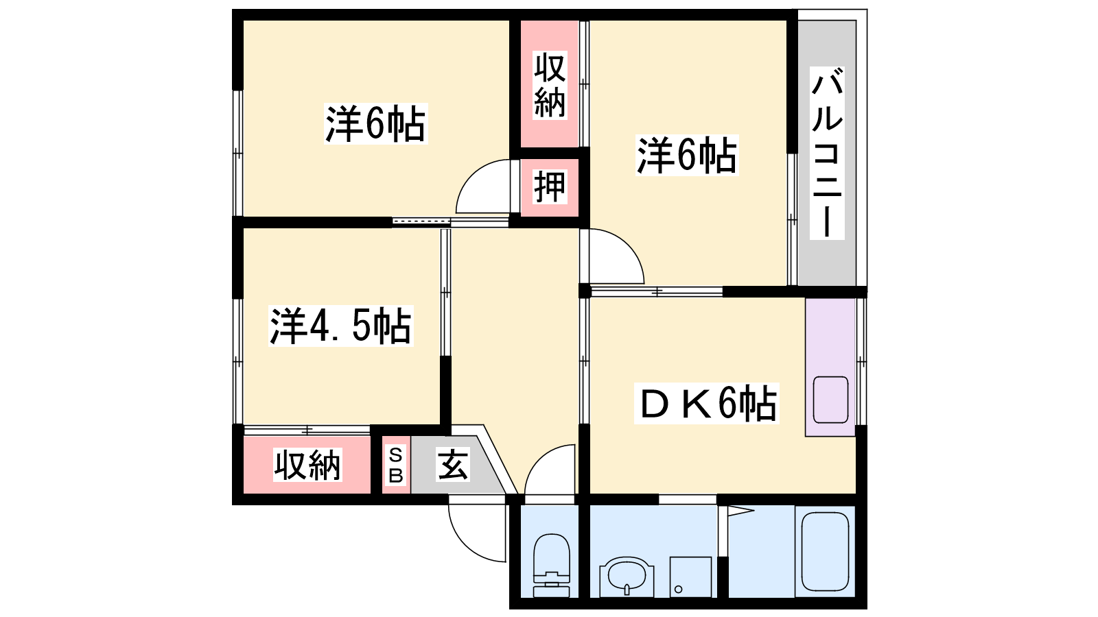 - DK6帖、洋室6帖、洋室6帖、洋室4.5帖