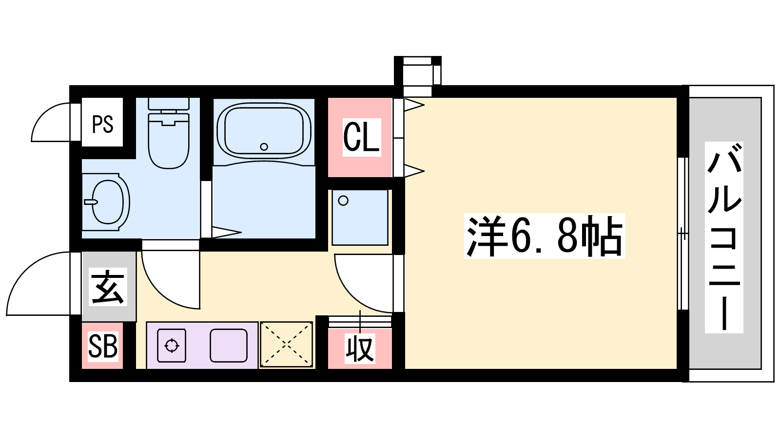 - K2.5帖、洋室6.8帖