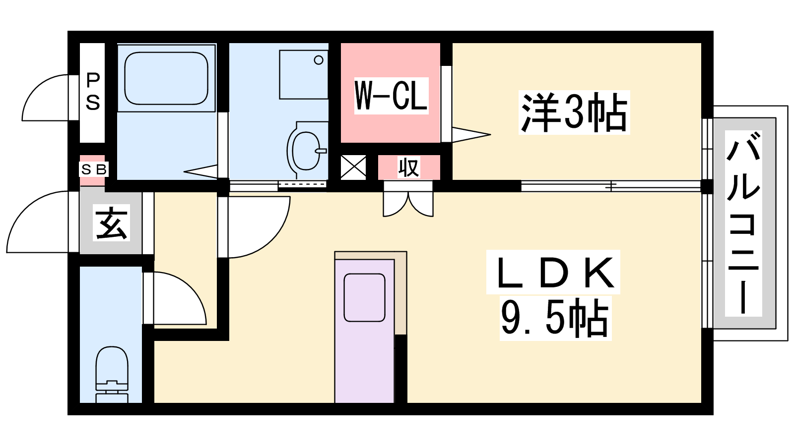 - LDK9.5帖、洋室3帖
