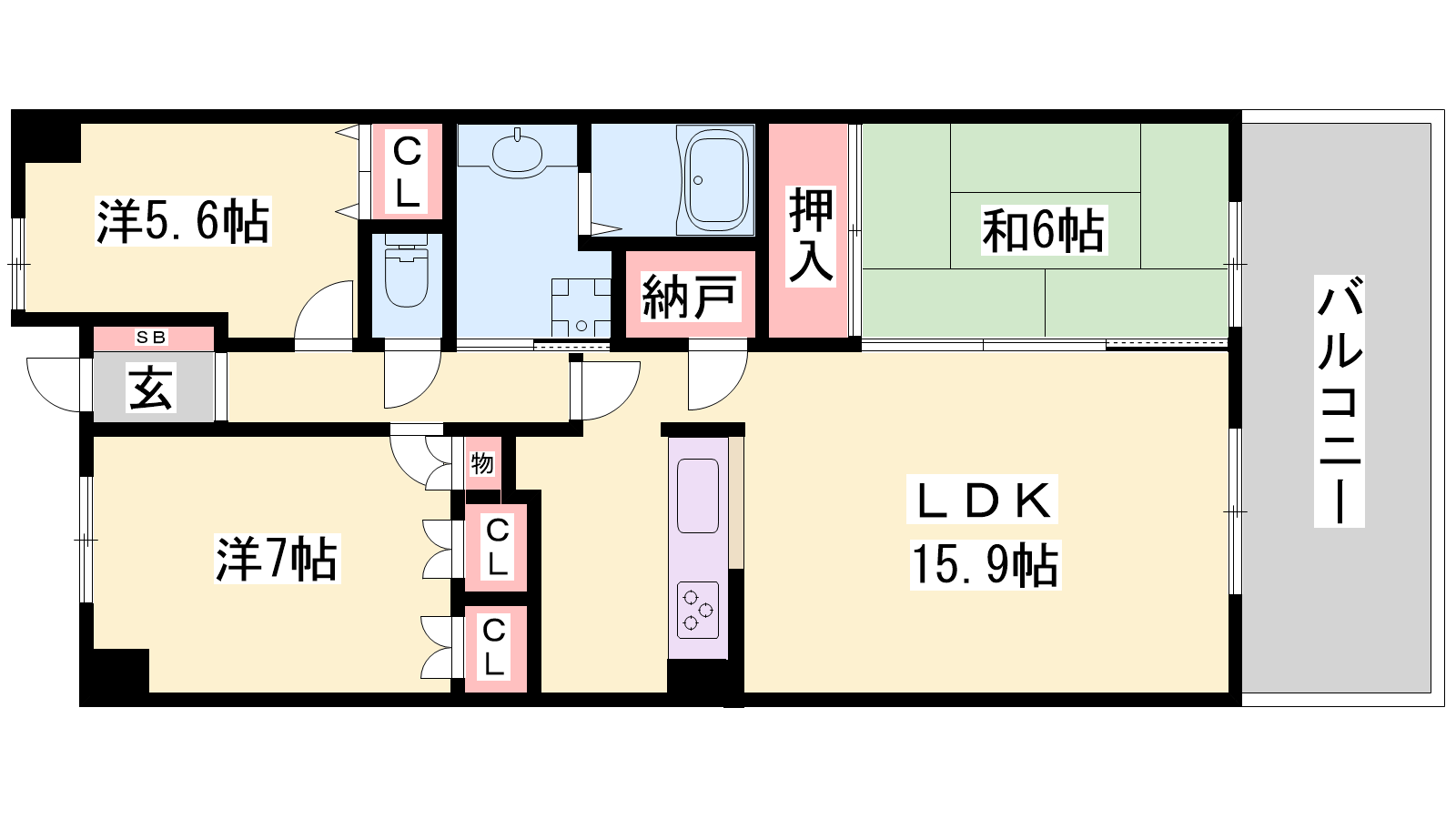 - LDK12.5帖、洋室7帖、洋室5.6帖、和室6帖