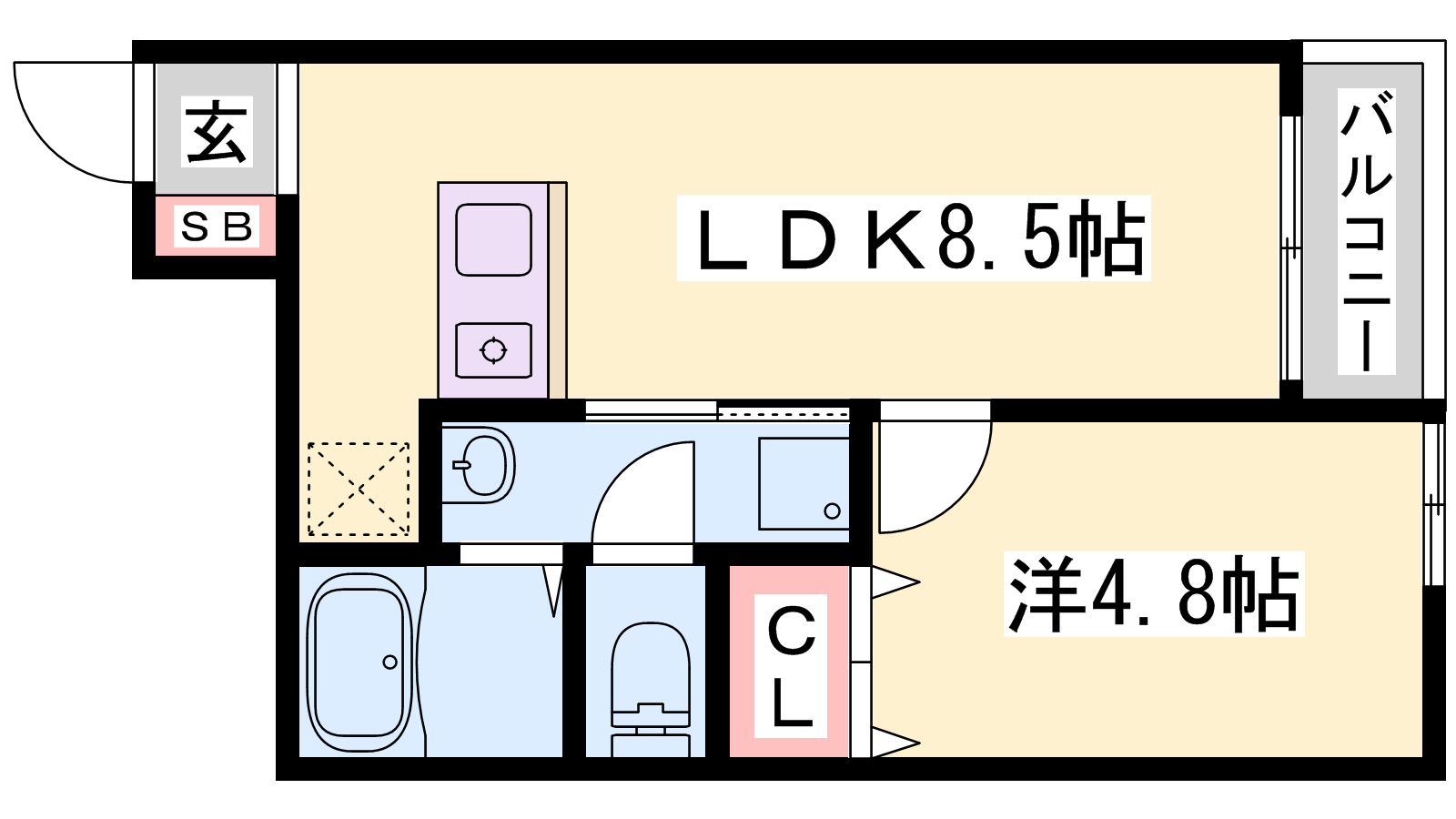 - LDK8.5帖、洋室4.8帖