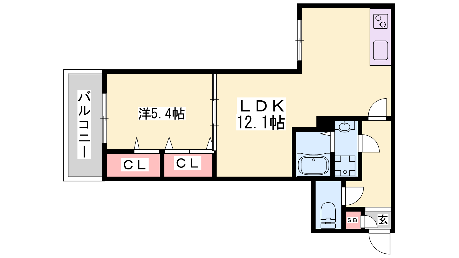 - LDK12.1帖、洋室5.4帖