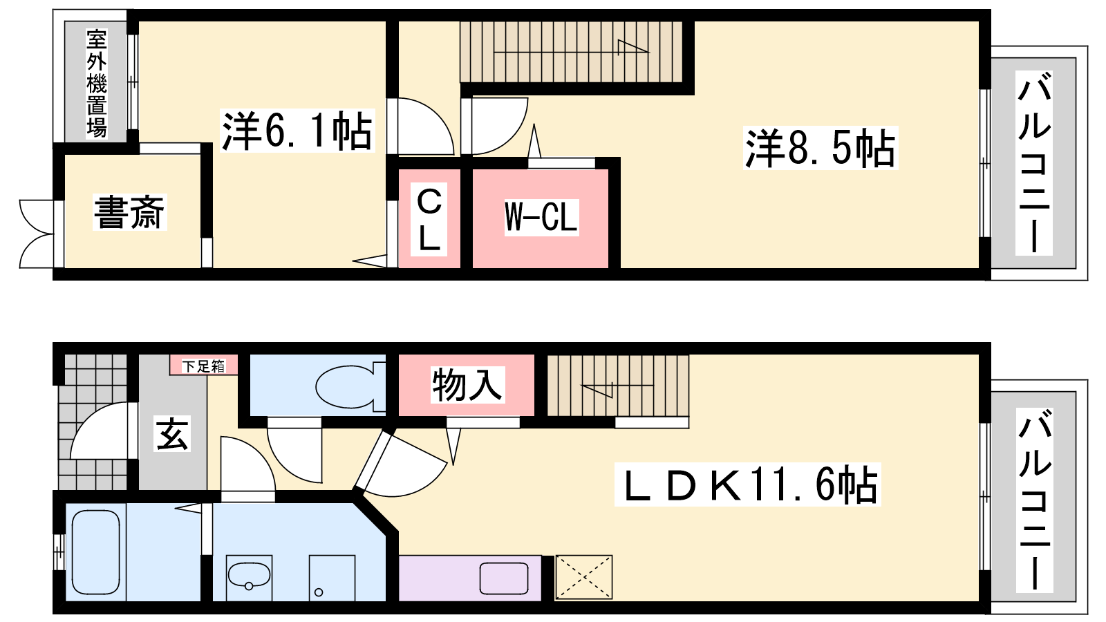 - LDK11.6帖、洋室8.5帖、洋室6.1帖