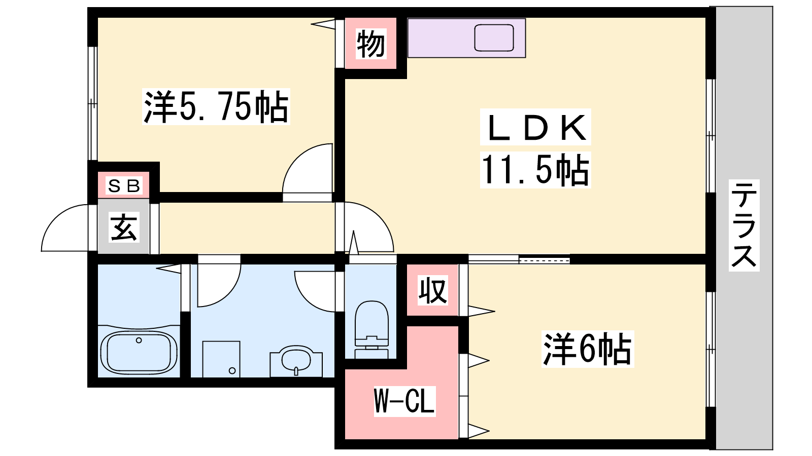 - LDK11.5帖、洋室6帖、洋室6帖