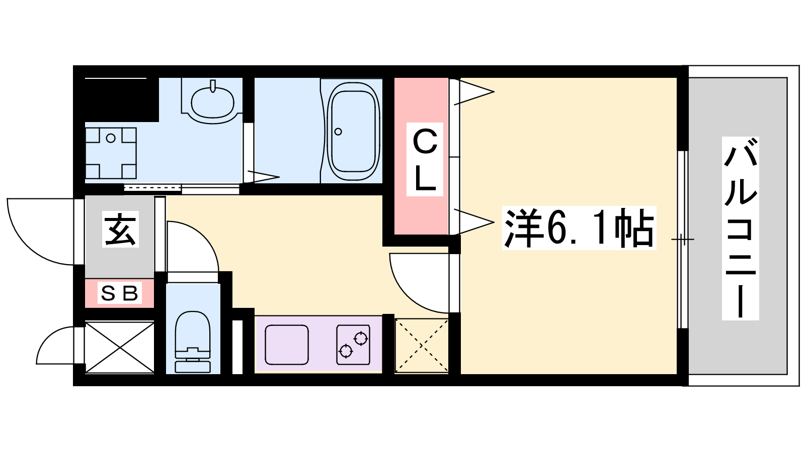 - K3.9帖、洋室6.1帖