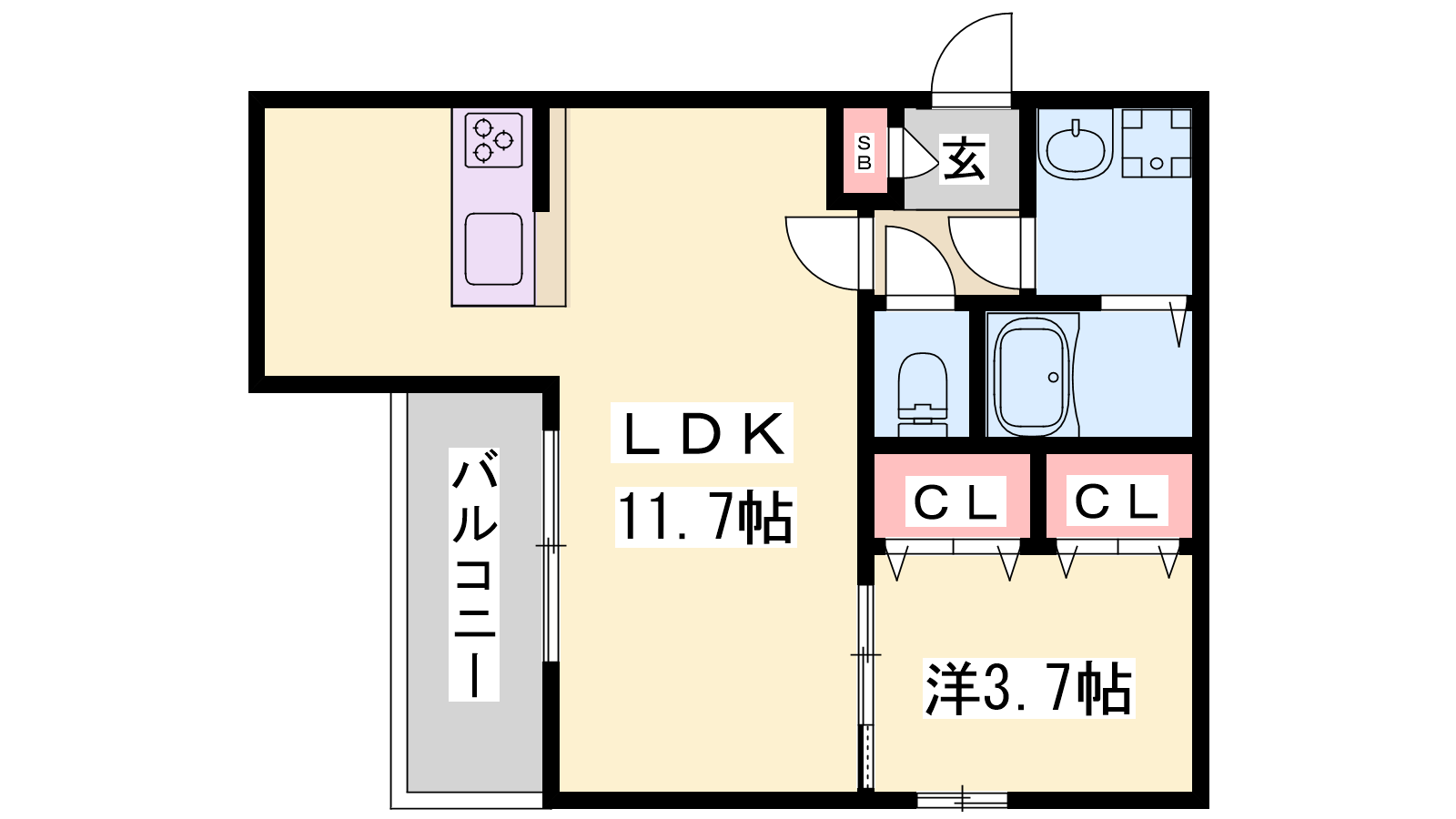 - LDK11.7帖、洋室3.9帖