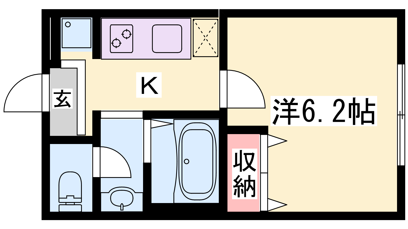 - K3帖、洋室6.2帖