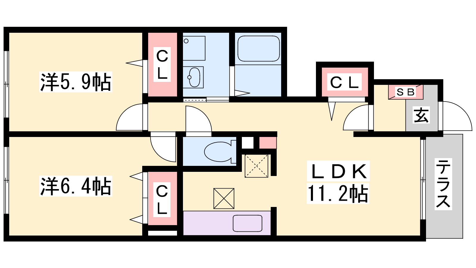 - LDK11.2帖、洋室5.9帖、洋室6.4帖