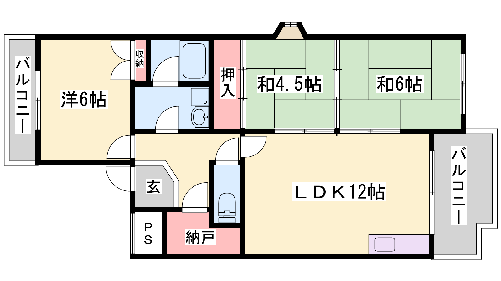 - LDK12帖、洋室6帖、和室6帖、洋室4.5帖