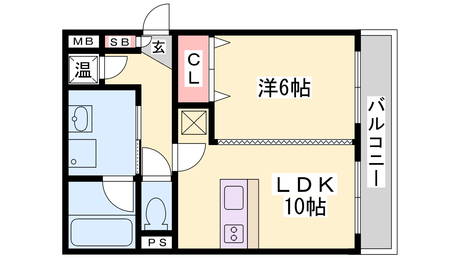 - LDK10帖、洋室6帖