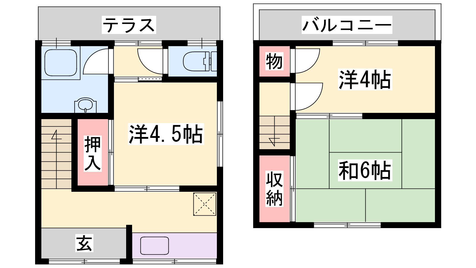 - K3帖、和室6帖、洋室4.5帖、洋室4帖