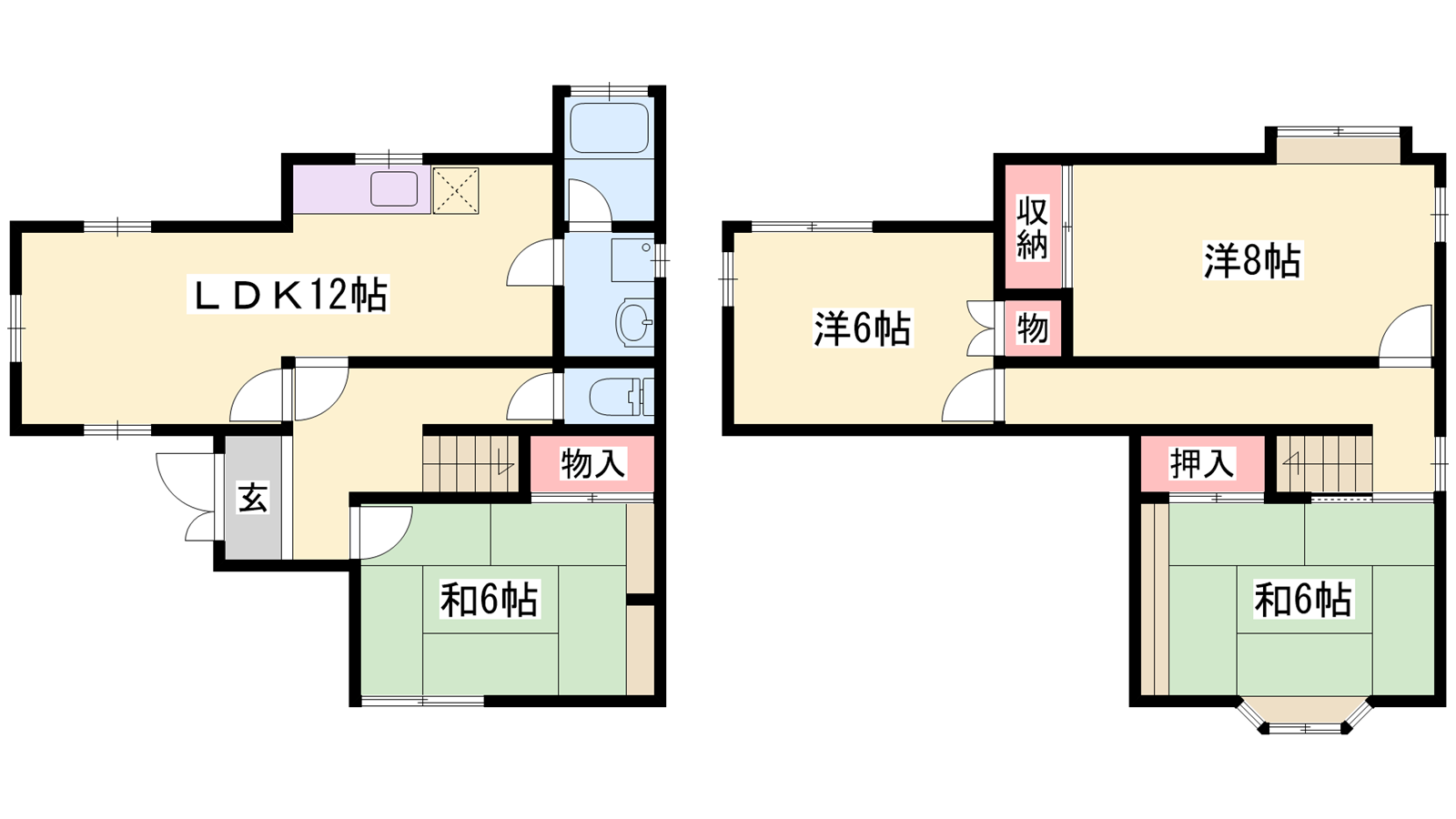 - LDK12帖、洋室8帖、洋室6帖、和室6帖、和室6帖