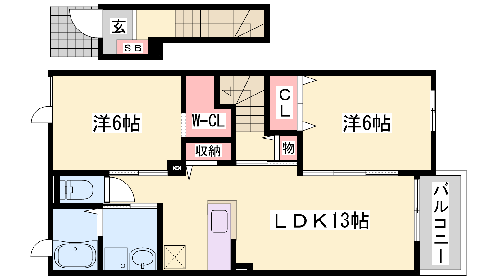 - LDK13帖、洋室6帖、洋室6帖