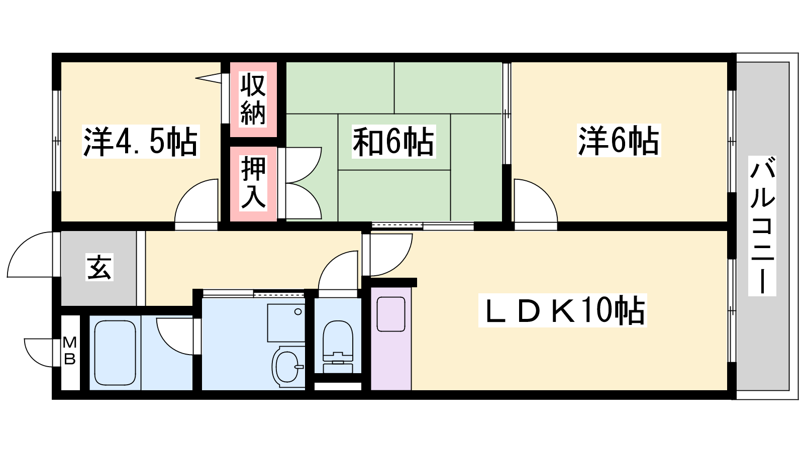 - LDK10帖、洋室6帖、和室6帖、洋室4.5帖