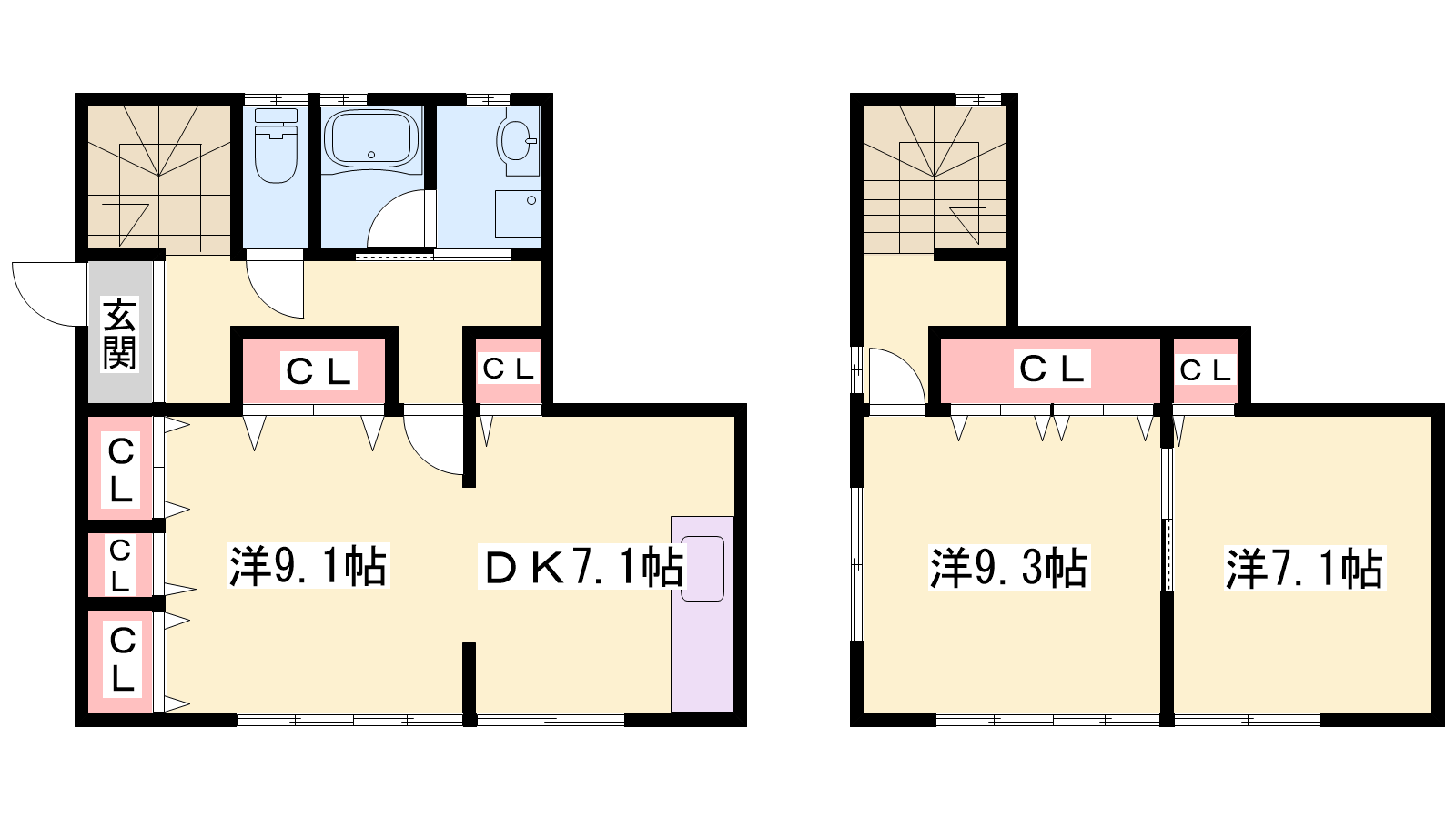 - DK7.1帖、洋室9.3帖、洋室9.1帖、洋室7.1帖